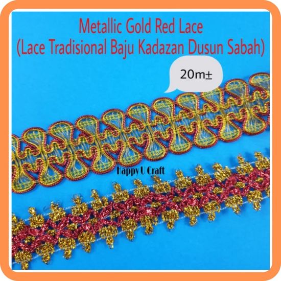Sesuai untuk menghiasi baju, decor baju, langsir, alas meja dan barang-barang kraftangan(Ready Stock)Metallic Gold Red Lace/Renda Warna Emas Merah/Lace Tradisional Baju Kadazan Dusun Sabah -
